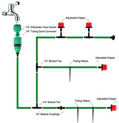 Flantor Garden Irrigation System, 1/4″ Blank Distribution Tubing Watering Drip Kit/DIY Saving Water Automatic Irrigation Equipment Set for Garden Greenhouse, Flower Bed,Patio,Lawn