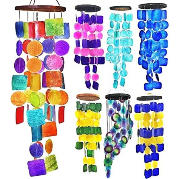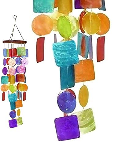 Bellaa 22890 Rainbow Wind Chimes Patio Lawn Garden Unique Wind Chimes Hanging Capiz Memorial Grace Handmade Chimes 27 inch Presents for Mom Gifts for Grandma