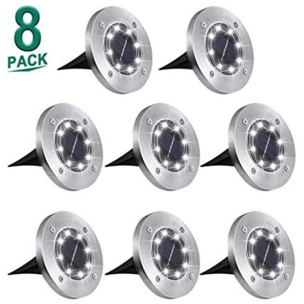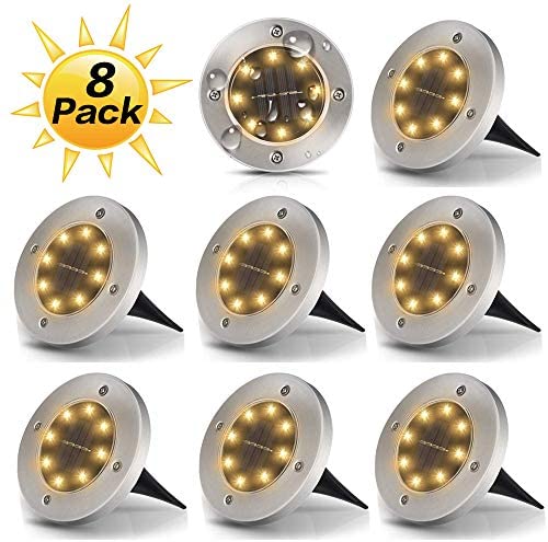 Dekugaa Solar Ground Lights, Disk Lights Waterproof in-Upgraded Outdoor Garden Waterproof Bright in-Ground Lights for Lawn Pathway Yard Driveway, with 8 LED (Warm White)