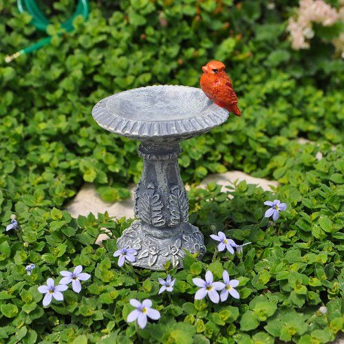 G & F MiniGardenn 10027 Fairy Garden Miniature, Cardinal Birdbath Pick
