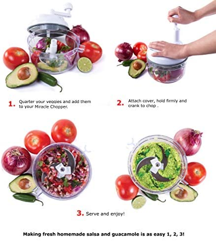 Kitchen + Home Manual Food Chopper – 4 in 1 Miracle Chopper, Salsa Maker, Blender, Slicer, Shredder and Julienne – As Seen on TV Manual Food Processor