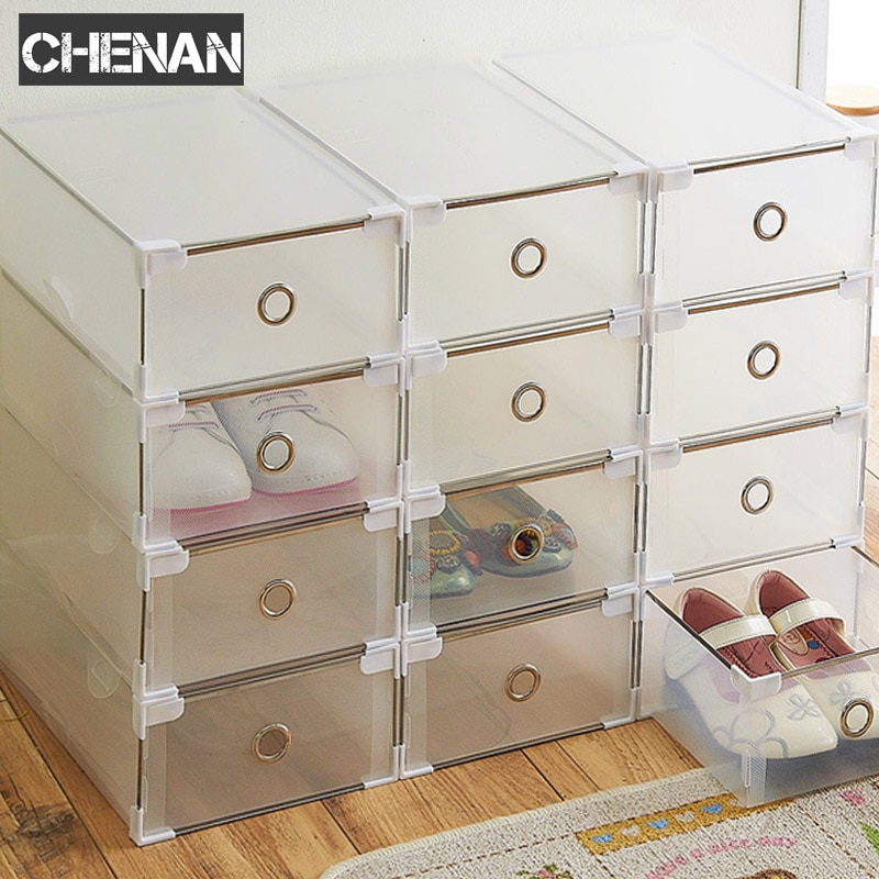 5PCS Transparent shoe box dustproof storage box can be superimposed combination shoe cabinet Clamshell men and women shoe box