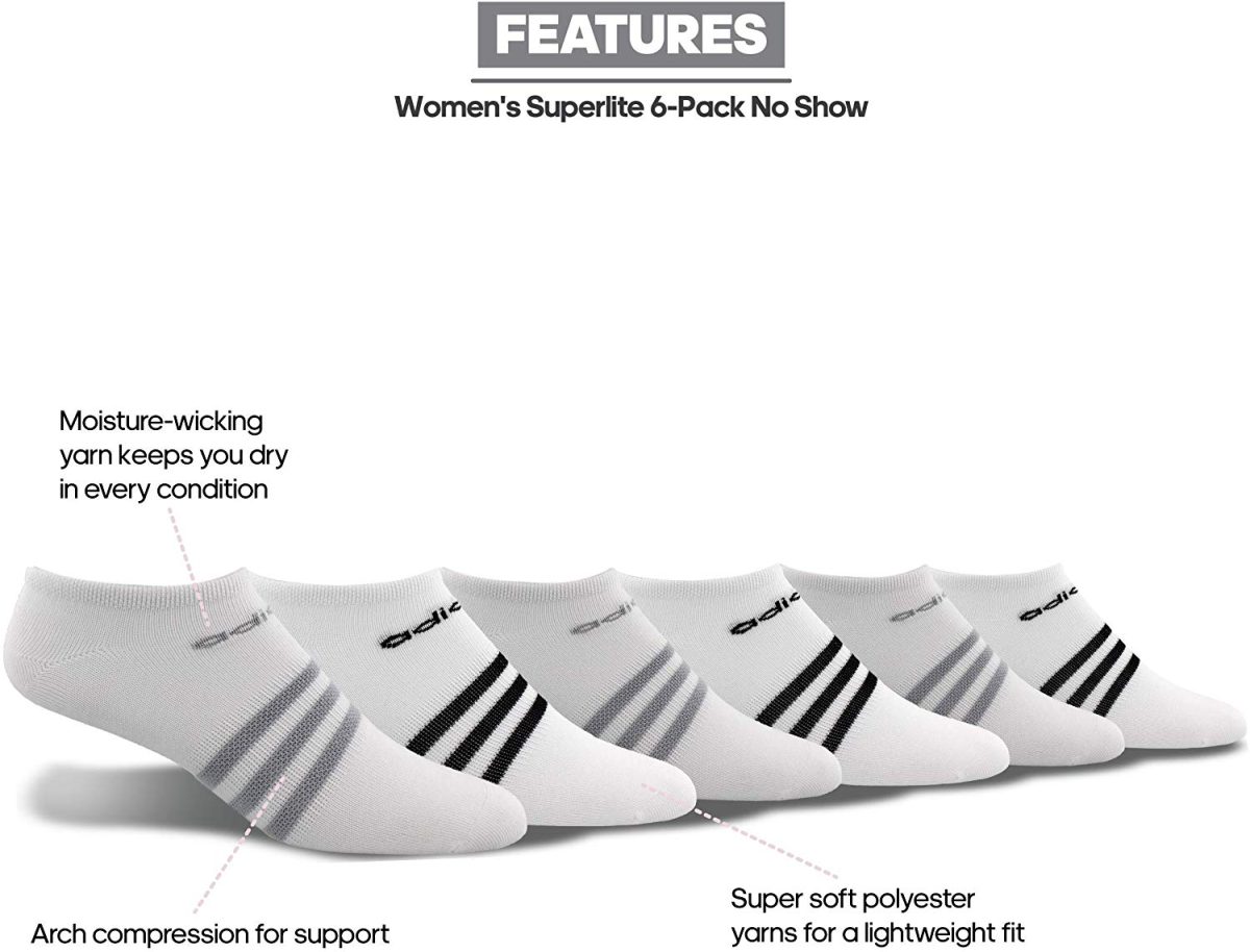 adidas Women’s Superlite No Show Socks (6-Pair)