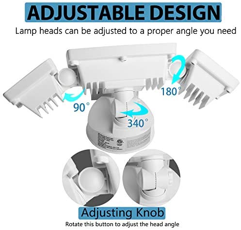 【IP65 WATERPROOF】IP65 waterproof rating ensures that your triple head security light fixture won’t give in in rain, sleet or snow weather. Perfect for entryways, stair, yard, garage,workshops, studio and large area lighting requirements.