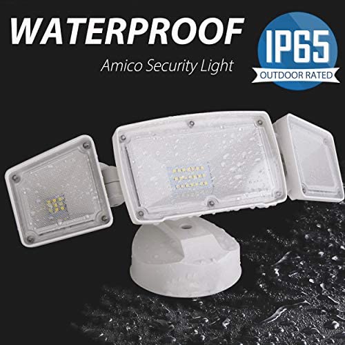 Amico 3500LM LED Security Light, 30W Super Bright Outdoor Flood Light, ETL- Certified, 5000K, IP65 Waterproof, 3 Adjustable Heads for Garage, Patio, Garden, Porch&Stair(White Light)