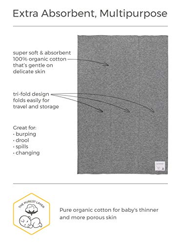 Burt’s Bees Baby – Burp Cloths, 5-Pack Extra Absorbent 100% Organic Cotton Burp Cloths, Heather Grey Pattern
