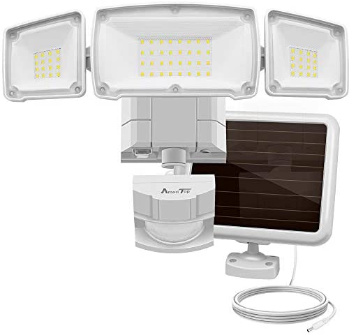 Solar Lights Outdoor, AmeriTop Super Bright LED Solar Motion Sensor Lights with Wide Angle Illumination; 1600LM 6000K, 3 Adjustable Heads, IP65 Waterproof Outdoor Security Lighting