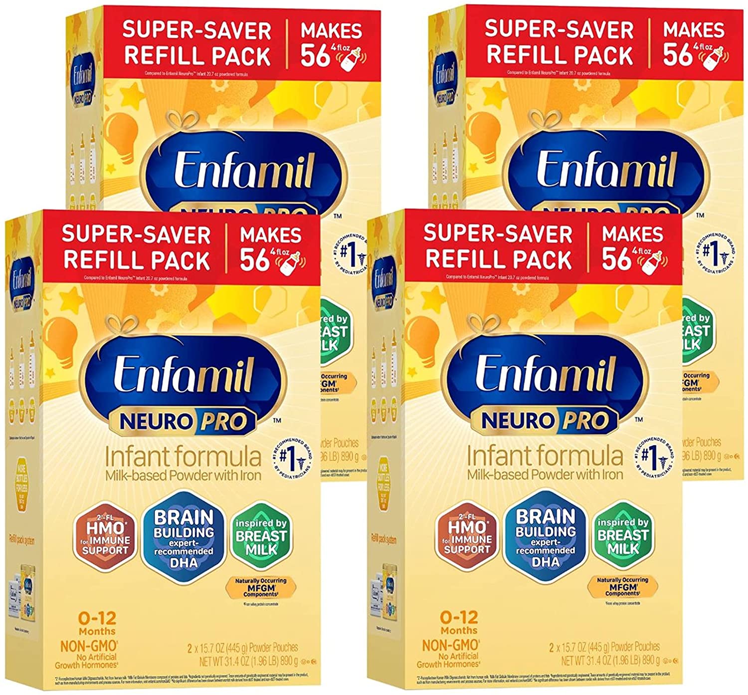 Enfamil NeuroPro Baby Formula, Triple Prebiotic Immune Blend with 2’FL HMO & Expert Recommended Omega-3 DHA, Inspired by Breast Milk, Non-GMO, Refill Box, 31.4 Oz, Pack of 4