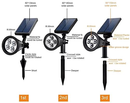 The newest upgrade version.2 in 1 Installation – Stick into the ground./Use included screws to mount on the wall, Adjustable Light & Solar Panel – Adjust the light angle to illuminate the perfect spot and adjust the solar panel angle for optimum sun exposure.