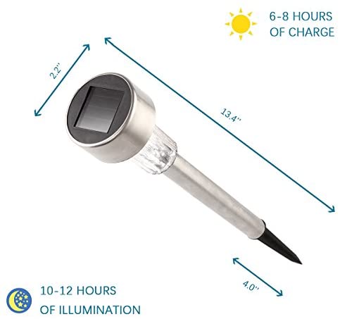 ENERGY SAVING: Powered by the sun. They will stay lit for up to 8 hours illuminating your walkways for the night. Save your electricity bills.