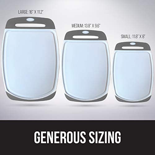 Home Home and Kitchen GORILLA GRIP Original Oversized Cutting Board, 3 Piece, BPA Free, Dishwasher Safe, Juice Grooves, Larger Thicker Boards, Easy Grip Handle, Non Porous, Extra Large, Kitchen, Set of 3, Gray