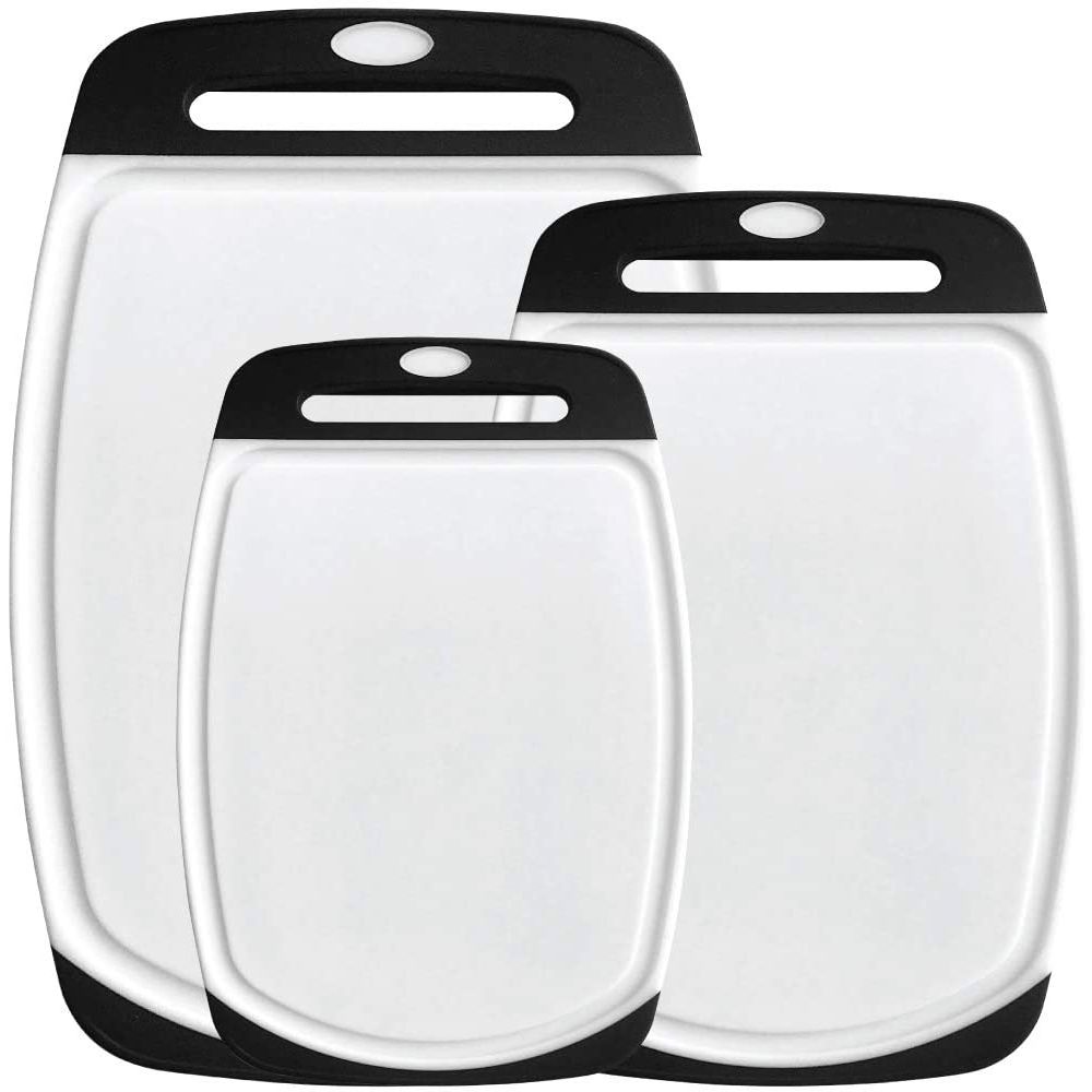 GORILLA GRIP Original Oversized Cutting Board, 3 Piece, BPA Free, Dishwasher Safe, Juice Grooves, Larger Thicker Boards, Easy Grip Handle, Non Porous, Extra Large, Kitchen, Set of 3, Gray