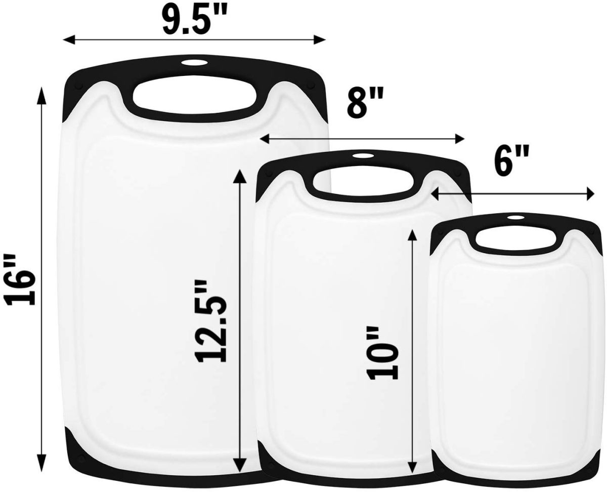 HOMWE Kitchen Cutting Board (3-Piece Set) | Juice Grooves w/Easy-Grip Handles | BPA-Free, Non-Porous, Dishwasher Safe | Multiple Sizes (Set of Three, Black)