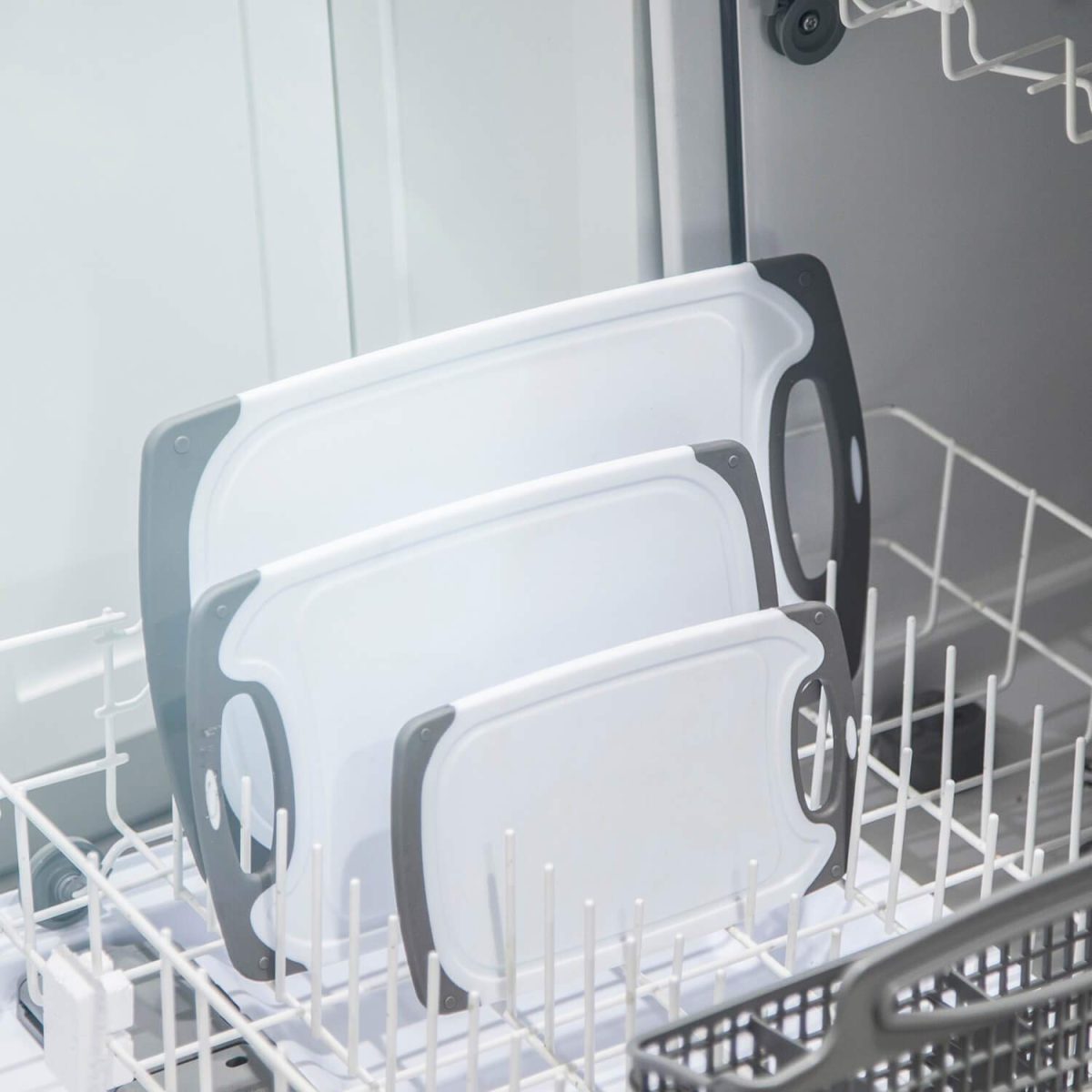 HOMWE Kitchen Cutting Board (3-Piece Set) – Juice Grooves with Easy-Grip Handles – BPA-Free, Non-Porous, Dishwasher Safe – Multiple Sizes (Gray)