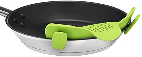The Kitchen Gizmo Snap N’ strain’s universal design will take the strain out of straining. This top quality heat-resistant, silicone colander is the newest, most practical way to get your food strained thoroughly while avoiding transferring the food out of the pot. The Snap N’ Strain is flexible enough to fit onto nearly all pots, pans, and bowls. It snaps on neatly with two clips. The clips’ strong grip will keep it safely attached while in use and can be left attached to the pot while cooking. Once snapped the pot can be tilted over a sink or bowl and the Snap N’ Strain will do its magic. The liquids will be poured out while the food remains in the pot, even with heavier foods like potatoes.