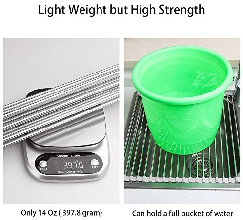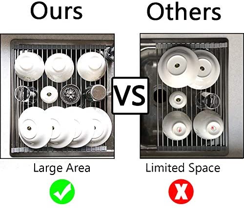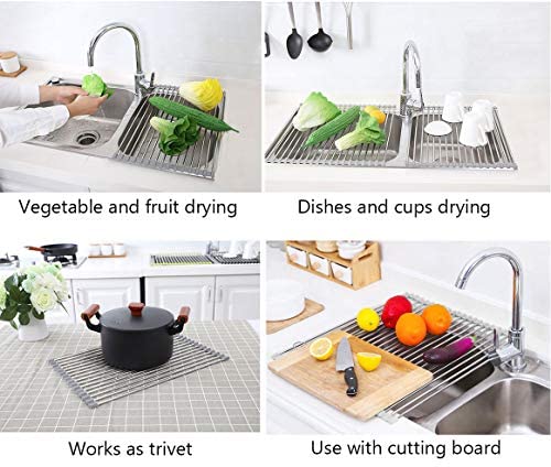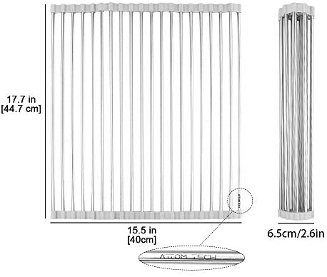 Home Home and Kitchen Large Dish Drying Rack, Attom Tech Home Roll Up Dish Racks Multipurpose Foldable Stainless Steel Over Sink Kitchen Drainer Rack for Cups Fruits Vegetables