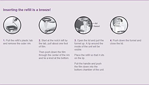 - EASY TO INSERT AND USE – to use in any Litter Genie pail, Simply pull out a foot of film, Push it through the center of the cartridge and tie a knot at the bottom. Then, open the lid and funnel of the pail, sit the cartridge on top, and push the refill through to the bottom.