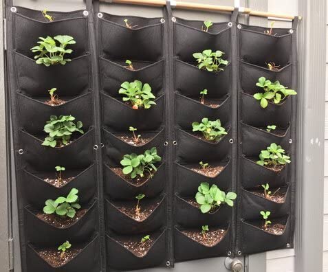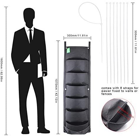 Material: Felt Cloth, 7-Pocket Wall Hanging Planter Balcony Garden Vertical Flower Vege Herbs Grow Bag.