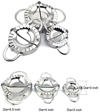 Mirror-Polishing Surface and Sand Blasting Back Side: Stainless steel Chinese dumpling press machine with high mirror-polishing on surface and sand blasting treatment on the back side, 3 sizes for choice: diameter 3 inch, 4 inch and 4.5 inch( not including handle size), perfect size and seals great for Aushak