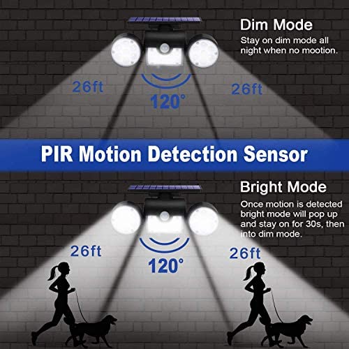 🌞【Super-Bright & 360° Rotable Spotlights 】- The outdoor solar security lights has 3 heads with 30 LEDS that can be rotated 360°, offering a good coverage of luminosity, you can easily direct the heads in your desired directions. PS: Auto on at night / Auto off at day.