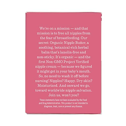 Organic Nipple Butter For Breastfeeding & Dry Skin. NO Petroleum, Parabens, or Lanolin. Soothing Organic Nipple Butter — it’s buttery and botanical-rich herbal nipple cream that’s lanolin-free and non-sticky. The result? It moisturizes dry skin, and brings your nipples back to their happy place. And since we suspect that it just might end up in baby’s mouth, we made sure it’s the first Non-GMO Project Verified nipple cream. So mamas, rejoice: there’s no need to wash it off before nursing! Chosen by hospital NICUs. Dermatologist tested and clinically tested for irritation. Certified by Oregon Tilth.