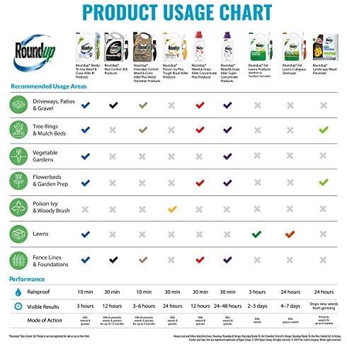 Kill the toughest weeds and grasses down to the root with Roundup Ready-To-Use Weed & Grass Killer III with Pump ‘N Go 2.1 Sprayer! The formula is ideal for use in and around vegetable gardens, flower beds, tree rings, and mulched beds, as well as on cracks in driveways, walkways, and patios. Plus the Pump N’ Go Sprayer with an extendable wand provides 10 minutes of continuous spray to ensure that problem weeds and grass will stay away! This convenient, no-mix formula is rainproof in just ten minutes-AND you get visible results in 3 hours. Kill weeds faster with Roundup.
