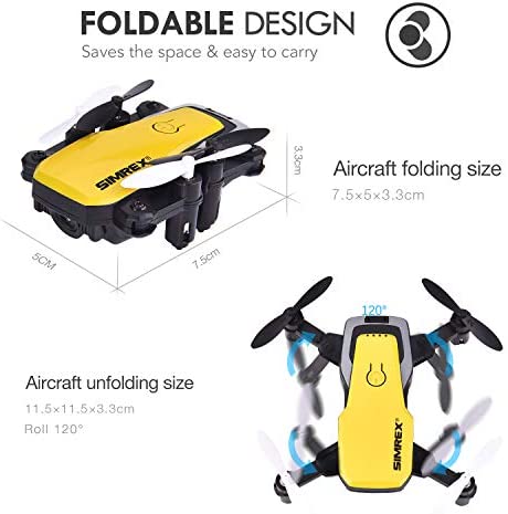 SIMREX X300C 8816 Mini Drone with Camera WiFi HD FPV Foldable RC Quadcopter Rtf 4CH 2.4Ghz Remote Control Headless [Altitude Hold] Super Easy Fly for Training – Yellow