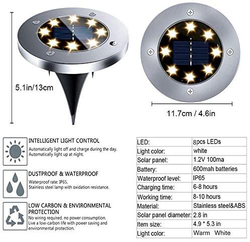 ★Provide lighting for any place: Disk Lights provide perfect lighting for your courtyard, gardens, sidewalks, lawns and corridors, etc., to add a beautiful scene for the night view of the night. Just place it wherelighting is needed at night . No need to replace wiring or batteries, use free solar energy!