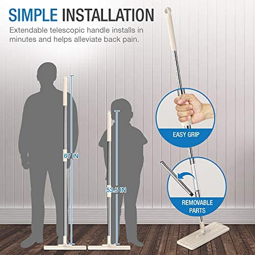 Easy to maneuver across floors. Adjust mop length based on height and clean away!