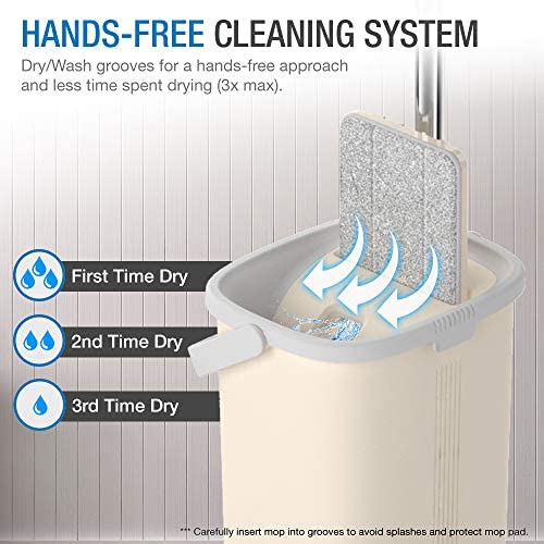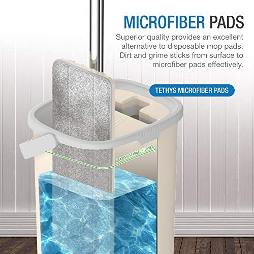 Home Home and Kitchen TETHYS Flat Floor Mop and Bucket Set for Professional Home Floor Cleaning System with Aluminum Handle/2-Washable Microfiber Pads Perfect Home + Kitchen Cleaner for Hardwood, Laminate, Tiles, Vinyl