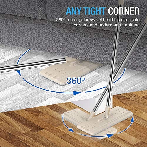 280° SWIVEL HEAD- Sleek design extends reach beneath and around furniture. Removes the dirt and grime from those hard to reach places! A 280° rotatable mop head gives access to various angles of cleaning and puts you at an advantage over the crumbs and dust on your kitchen floor.
