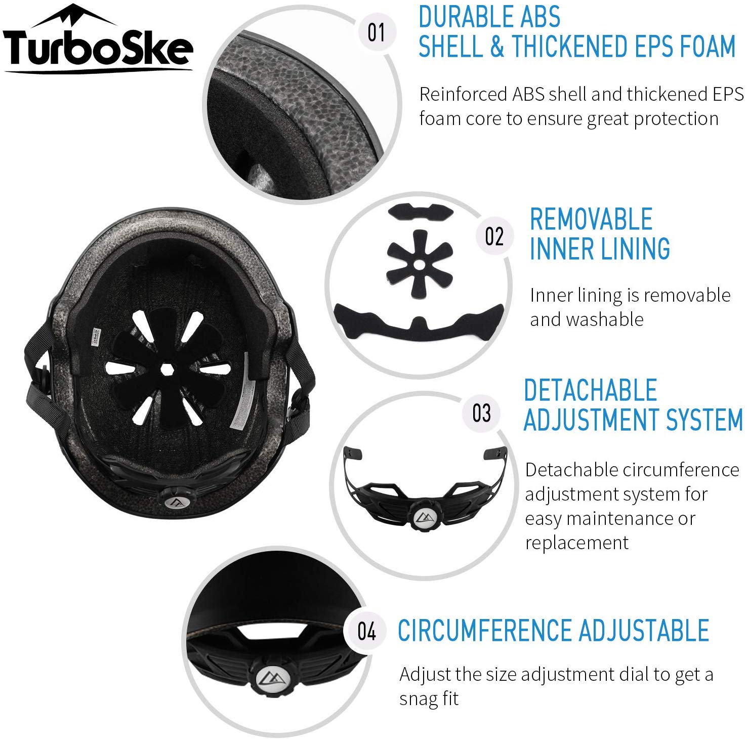 TurboSke Skateboard Helmet, BMX Helmet, Multi-Sport Helmet, Bike Helmet for Kids, Youth, Men, Women