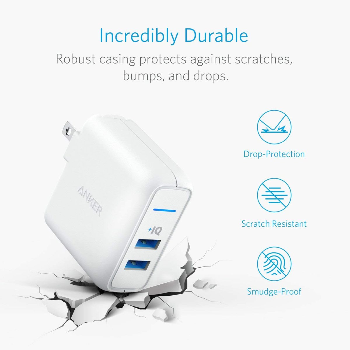 USB Charger, Anker Elite Dual Port 24W Wall Charger, PowerPort 2 with PowerIQ and Foldable Plug, for iPhone 11/Xs/XS Max/XR/X/8/7/6/Plus, iPad Pro/Air 2/Mini 3/Mini 4, Samsung S4/S5, and More