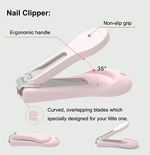 SPECIFICALLY DESIGNED FOR KIDS: Nail Clipper: Ergonomic handle, curved, overlapping blades, non-slip handle. Baby-sized Nail Scissor: Large hole handle, non-slip grip, circular head design. Nail File: Delicate, smooth, rounded, perfect size for the small fingers and toes of babies toddlers. Tweezers: Anti-slip handle with bumps, easy to grip, rounded tip design, useful for cleaning like picking the nail scraps, clean baby’s ear or bellybutton.