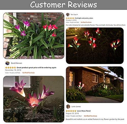 Solar Lights Outdoor – New Upgraded Solar Garden Lights, Multi-Color Changing Lily Solar Flower Lights for Patio,Yard Decoration, Bigger Flower and Wider Solar Panel (2 Pack,Purple and Red)