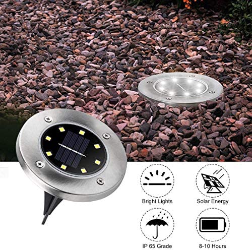Home Patio, Lawn and Garden ZGWJ Solar Ground Lights,8 LED Disk Lights Upgraded Outdoor Garden Lights Landscape Lights for Lawn Pathway Yard Deck Patio Walkway,8 Pack White